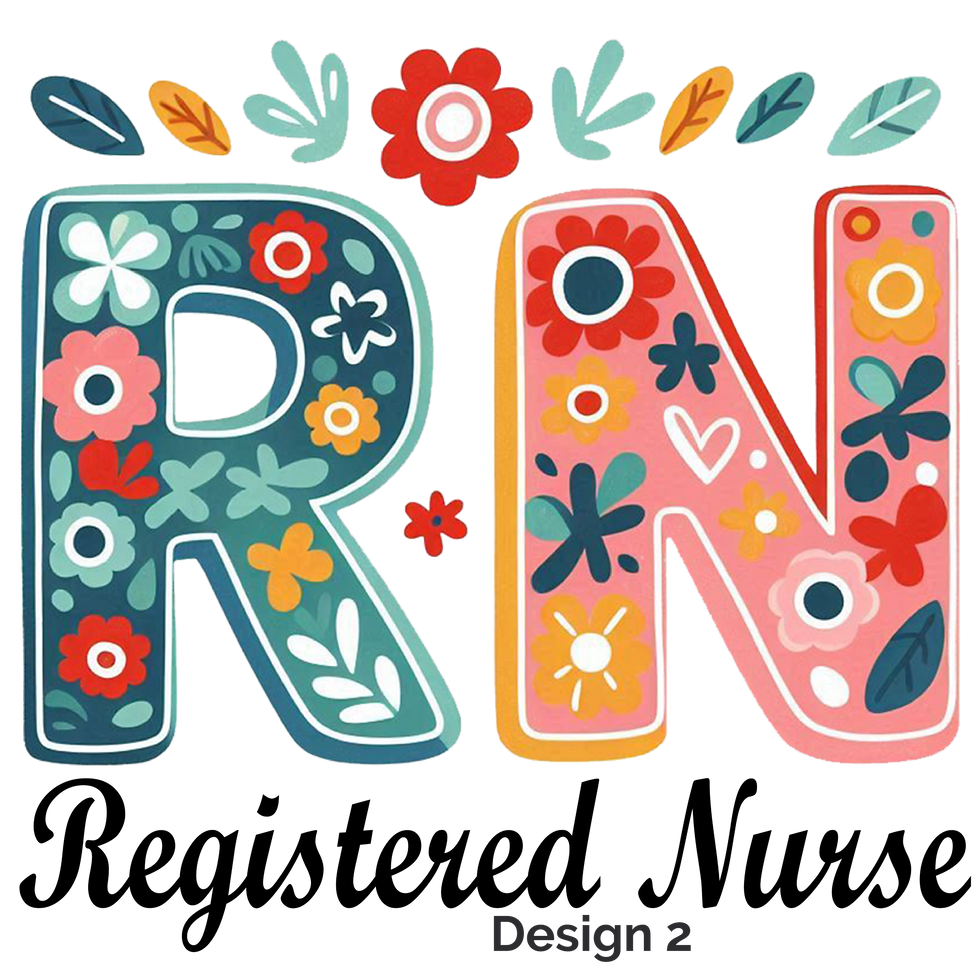 RN, Registered Nurse, leopard, stethascope, flowers, red,white and blue